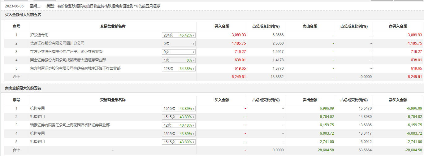 具体来看,机构合计净卖出2.24亿元。此外,瑞银证券上海花园石桥路证券营业部分别卖出6159.75万元;沪股通专用、信达证券四川分公司分别买入3089.93万元、1185.75万元。