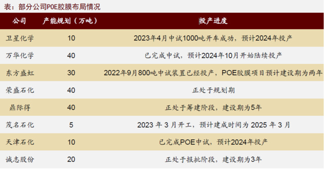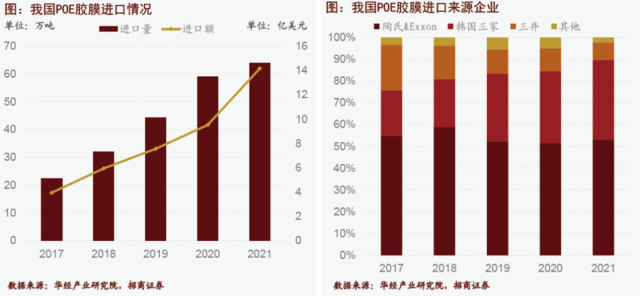我国目前没有POE胶膜生产能力,进口依赖程度高。