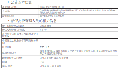 公告显示,张少华曾任中银国际证券股份有限公司资产管理板块副总经理、申万菱信基金管理有限公司副总经理等职务。