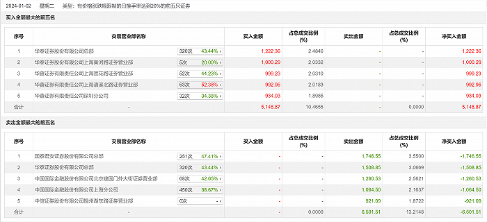龙虎榜丨宁波远洋今日涨停,营业部席位合计净卖出1352.64万元