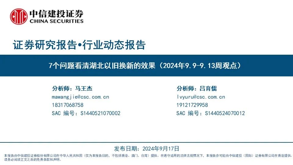 【中信建投家电 | 动态】7个问题看清湖北以旧换新的效果(2024年9.9-9.13周观点)