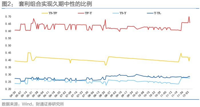 考虑到修正久期和债券价格随时间变动,为使套利组合一直保持久期中性,组合中品种的头寸比例也应随时间进行修正,但实操中每天对组合比例进行修正的难度较大,且对运行策略的资金量要求较高。