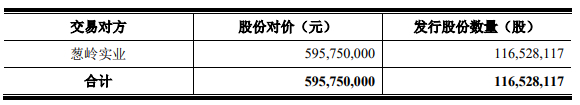 按照本次发行股份购买资产的发行价格5.1125元/股计算,上市公司本次发行股份购买资产发行的股票数量总计为116,528,117股,向葱岭实业发行股份的情况如下:
