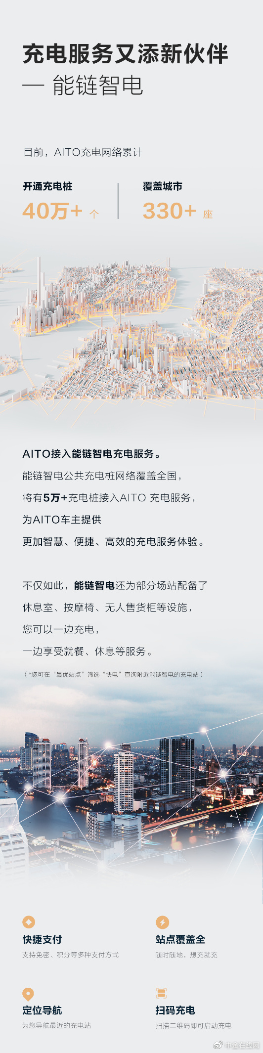 赛力斯AITO问界与能链智电达成合作 打造优质充电服务体验
