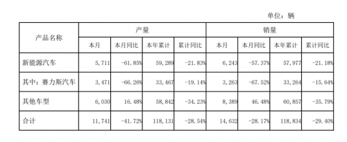 财经网汽车 9月12日讯,赛力斯集团公布2023年8月的产销快报,8月新能源汽车销售6243辆(包括但不限于AITO问界);前8月新能源汽车销售57977辆。总体来看,赛力斯集团8月汽车销量14632辆。