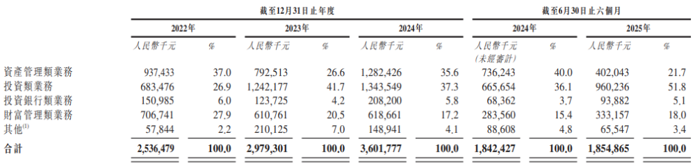 - 财富管理类业务:主要包括(a)证券经纪;(b)证券投资咨询服务;(c)金融产品销售;(d)信用业务;(e)研究业务;及(f)期货业务。