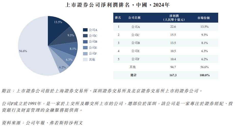 根据弗若斯特沙利文(Frost & Sullivan)报告,在中国会计准则下,2022年至2024年,公司的收入及净利润年复合增长率,在中国42家A股上市证券公司中分别排名第五及第十。于2024年,公司的平均总资产收益率及扣非加权平均净资产收益率在上述A股已上市证券公司中分别排名第一及第七。