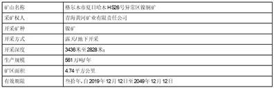 2019年12月12日,黄河矿业取得由自然资源部核发得格尔木市夏日哈木HS26号异常区镍铜矿采矿权证,登记信息如下: