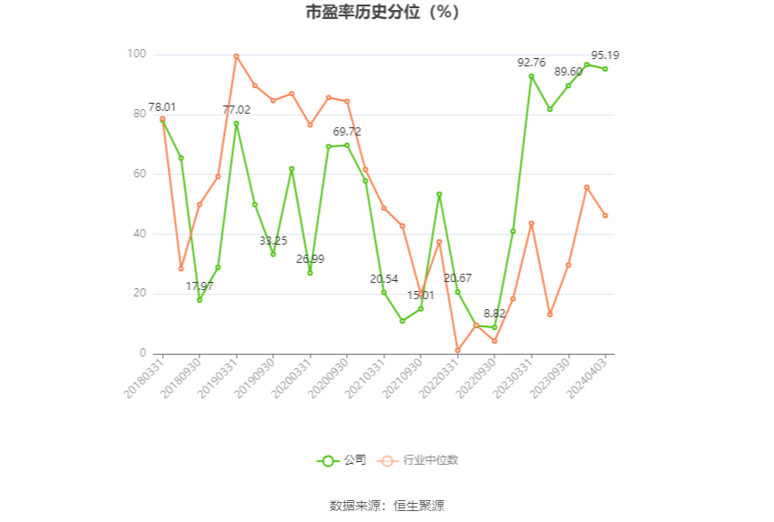 市盈率为负时,不显示当期分位数,会导致折线图中断。