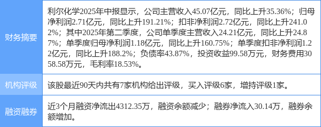 2025年8月28日,东兴证券研究员刘宇卓发布了对利尔化学的研报《业绩同比增长,行业有望底部回暖》,该研报对利尔化学给出“买入”评级。证券之星数据中心根据近三年发布的研报数据计算,该研报作者对此股的盈利预测准确度为31.73%。