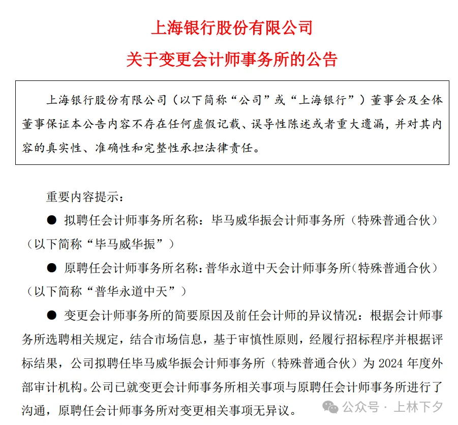 公告称,公司拟聘任毕马威华振会计师事务所(特殊普通合伙)为2024年度外部审计机构,取代原聘任的普华永道中天会计师事务所(以下简称普华永道)。