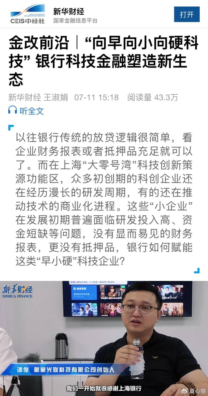 截至目前,上海银行对闵行区的科技信贷支持规模已突破50亿元,并深入对接“大零号湾”科技创新策源功能区,实现专精特新、高新技术、规上等重点企业合作覆盖率突破30%。展望未来,上海银行通过科技金融创新,正在持续完善“投、贷、保、扶”联动的服务生态,金融与科创的双向奔赴,正在闵行这片科创热土上生成新的历史。