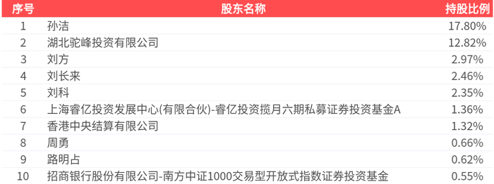 公司股东户数为7.16万户,前十大股东持股数量为5.03亿股,占总股本比例为42.90%,前十大股东持股情况如下: