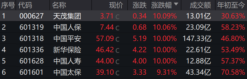 9月30日,A股保险板块集体大涨。Wind数据显示,截至收盘,保险指数收涨9.9%。其中,中国人保收涨10.06%,报7.44元/股,中国平安、新华保险、中国人寿集体涨停,分别报57.09元/股、46.42元/股、44.00元/股,中国太保收涨9.31%,报39.10元/股。
