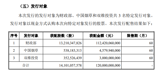 交行公告与中国银行只有财政部一家认购不同,交通银行的定增还出现了中国烟草与双维投资。据公告介绍,双维投资是中国烟草全资子公司。