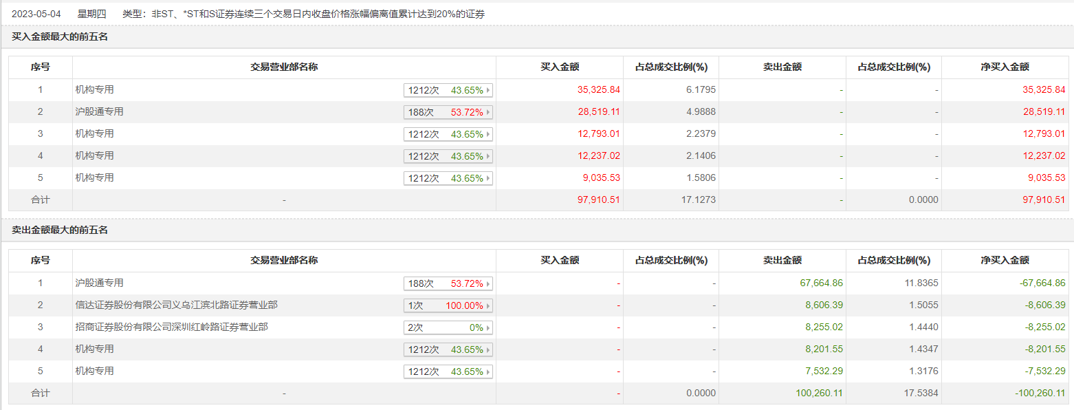 5月4日,新华保险今日涨6.56%,全天换手率达2.86%,振幅达10.58%。龙虎榜数据显示,4月27日至5月4日期间,上榜营业部席位合计净卖出2349.6万元。其中,机构买入6.94亿元,卖出1.57亿元,合计净买入5.37亿元。此外,沪股通专用分别买入2.85亿元;沪股通专用、信达证券义乌江滨北路证券营业部分别卖出6.77亿元、8606.39万元。
