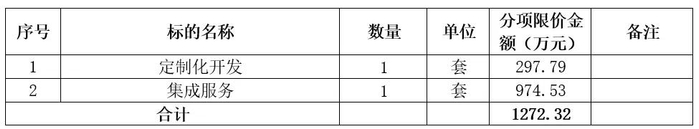 第 1 包:定制化开发和集成服务;预算:1272.32 万元;
