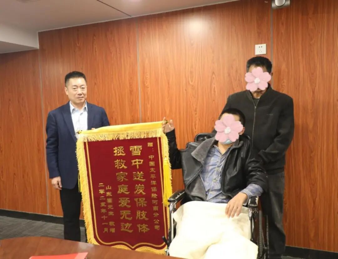 11月30日,一面绣有“雪中送炭保肢体,拯救家庭爱无边”的锦旗,被郑重送至中国太保产险河南分公司,锦旗背后,讲述了一个从绝望到重生的真实故事。