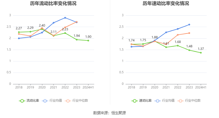2024年上半年,公司流动比率为1.90,速动比率为1.37。