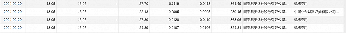 2月20日大宗交易成交338.83万股,成交额4421.74万元,占当日总成交额的7.36%,成交价13.05元,较市场收盘价13.05元持平。