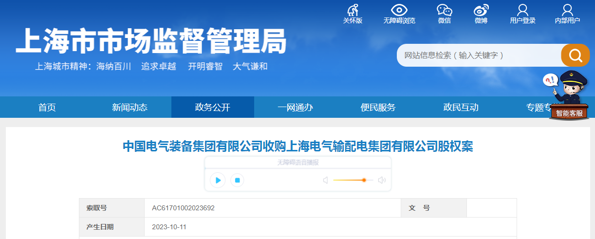 中国电气装备集团有限公司收购上海电气输配电集团有限公司股权案
