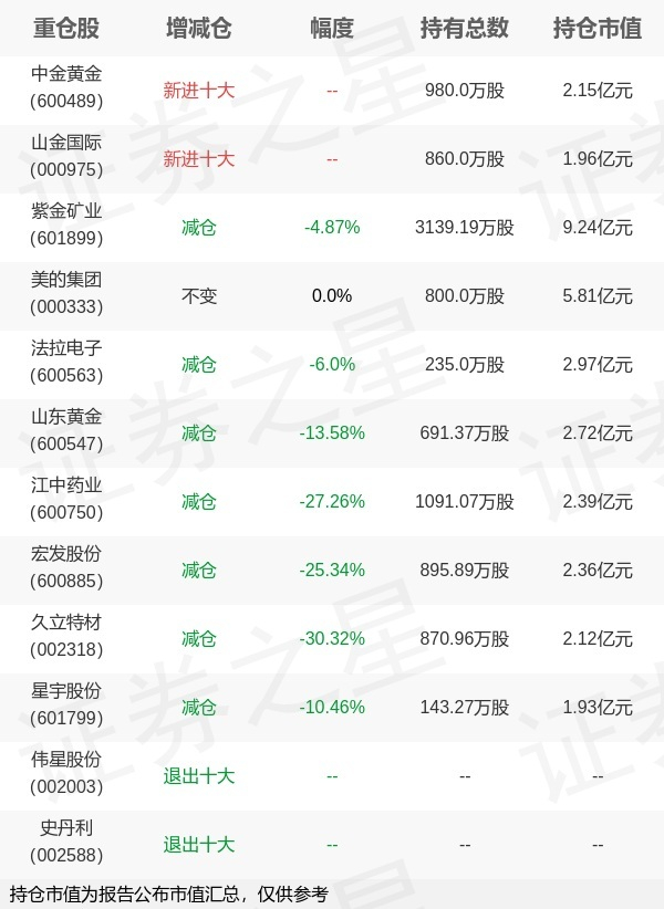 广发基金傅友兴旗下广发稳健A三季报最新持仓,重仓紫金矿业