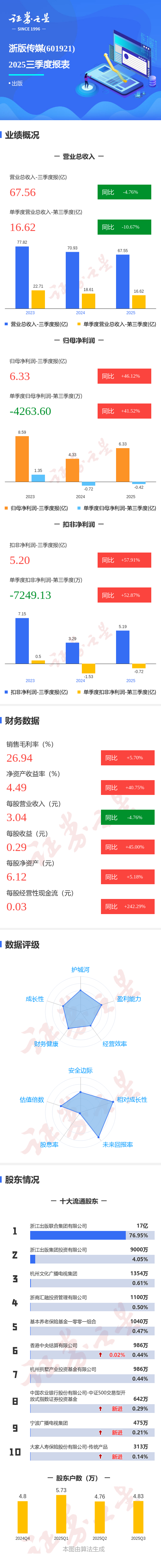 图解浙版传媒三季报:第三季度单季净利润同比增长41.53%