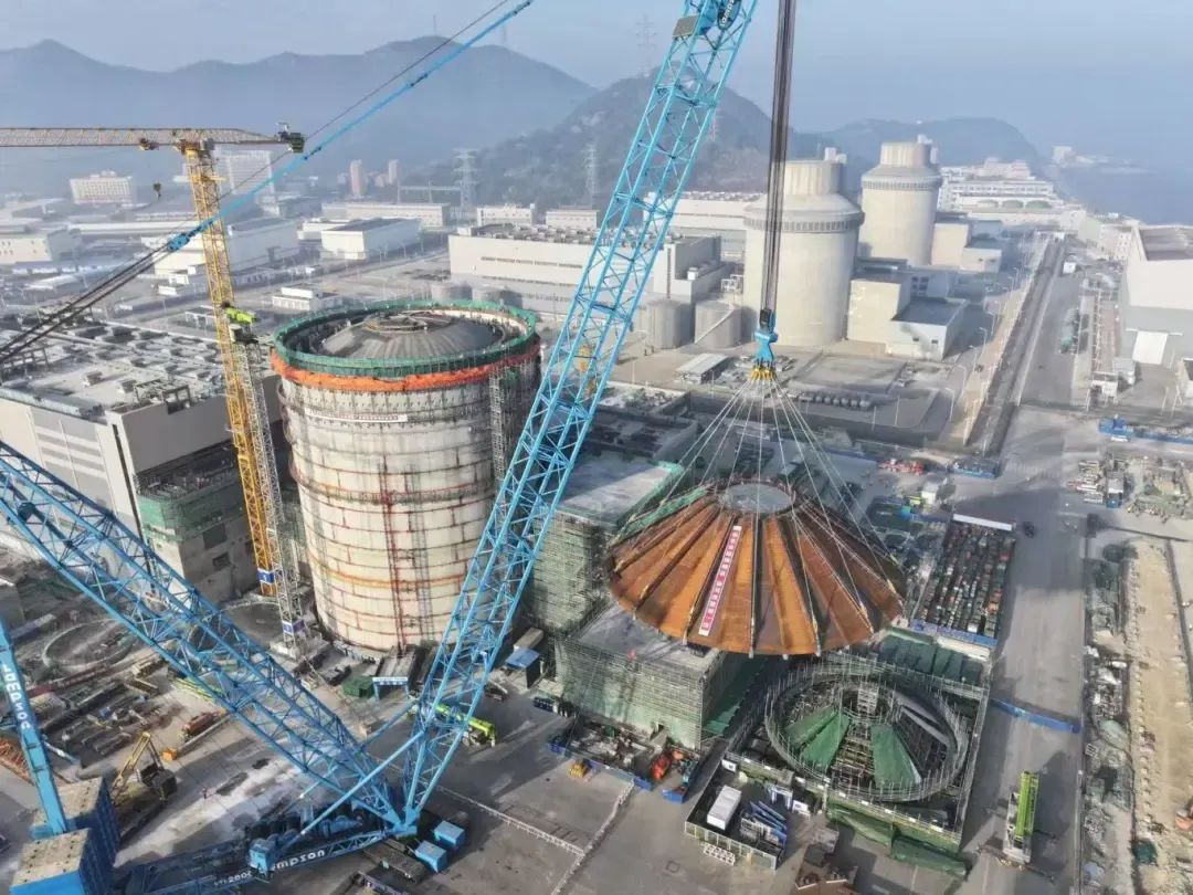 三门核电3号机组屏蔽厂房钢穹顶吊装就位