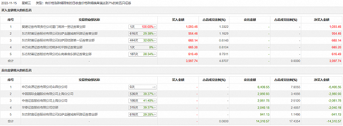 龙宇股份11月15日跌6.64%,全天换手率达16.2%,振幅达9.99%。龙虎榜数据显示,营业部席位合计净卖出1.03亿元。其中,申万宏源证券有限公司山西分公司、中国国际金融上海分公司分别卖出6406.55万元、2860.93万元;爱建证券厦门湖滨一里证券营业部、东方财富证券拉萨金融城南环路证券营业部分别买入1093.45万元、954.46万元。