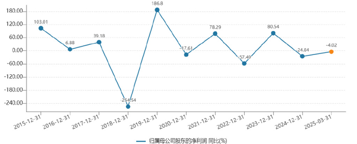 不过,从公司盈利状况来看,这些新产品似乎还没有开始发力。2024年,喜临门在营收微增0.59%的情况下,归母净利润同比下降24.84%。而这并不是喜临门近年来首次出现盈利水平下降情况。在过往十年中,该公司虽可保持营收持续增长,但净利润水平时常出现同比暴增或暴跌的情况。公司最新公布的2025年一季度报告显示,当季公司甚至陷入营收、利润双降局面。