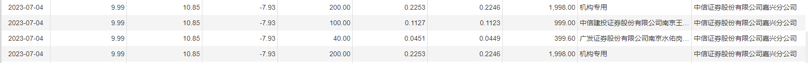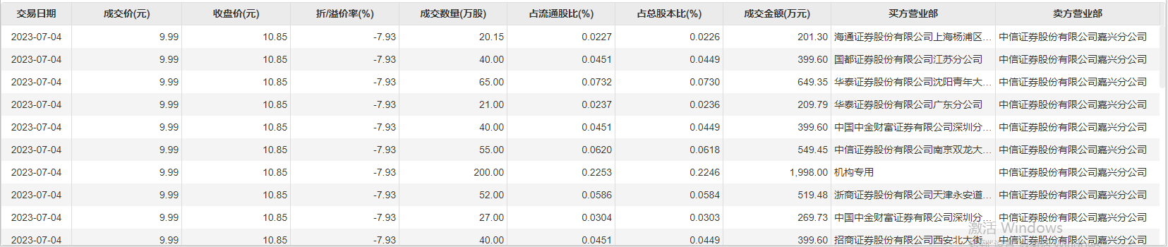 7月4日大宗交易成交1100.15万股,成交额1.1亿元,占当日总成交额的71.93%,成交价9.99元,较市场收盘价10.85元折价7.93%。