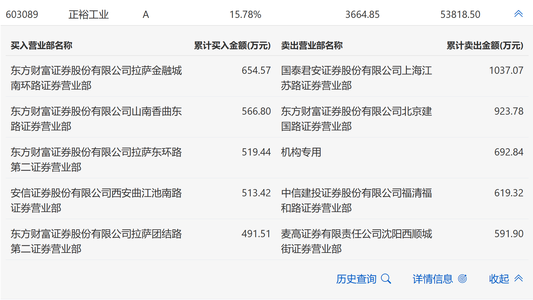 11月6日,正裕工业今日涨0.93%,全天换手率达16.47%,振幅达14.99%。龙虎榜数据显示,营业部席位合计净卖出1119.17万元。其中,机构合计净卖出692.84万元。此外,东方财富证券拉萨金融城南环路证券营业部、东方财富证券山南香曲东路证券营业部分别买入654.57万元、566.80万元;章盟主(国泰君安证券上海江苏路证券营业部)、东方财富证券北京建国路证券营业部分别卖出1037.07万元、923.78万元。