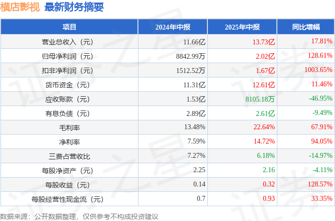 横店影视(603103)2025年中报简析:营收净利润同比双双增长,盈利能力上升