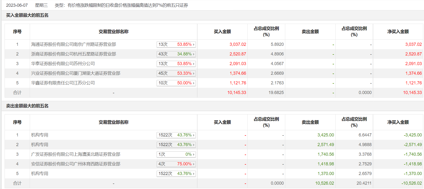 具体来看,机构合计净卖出7366.49万元。此外,海通证券南京广州路证券营业部、浙商证券杭州五星路证券营业部分别买入3037.02万元、2520.87万元;广发证券上海漕溪北路证券营业部、安信证券广州体育西路证券营业部分别卖出1740.56万元、1418.98万元。