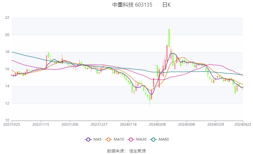 中重科技:2024年第一季度净利润1524.57万元 同比下降69.20%