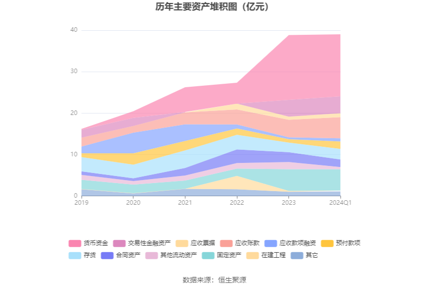 资产重大变化方面,截至2024年一季度末,公司其他流动资产较上年末减少70.04%,占公司总资产比重下降3.09个百分点;预付款项较上年末增加116.70%,占公司总资产比重上升2.45个百分点;应收账款较上年末增加21.00%,占公司总资产比重上升2.23个百分点;货币资金较上年末减少4.24%,占公司总资产比重下降1.88个百分点。