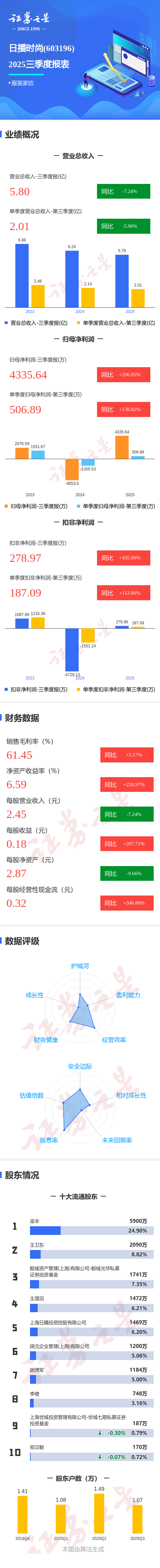图解日播时尚三季报:第三季度单季净利润同比增长138.83%