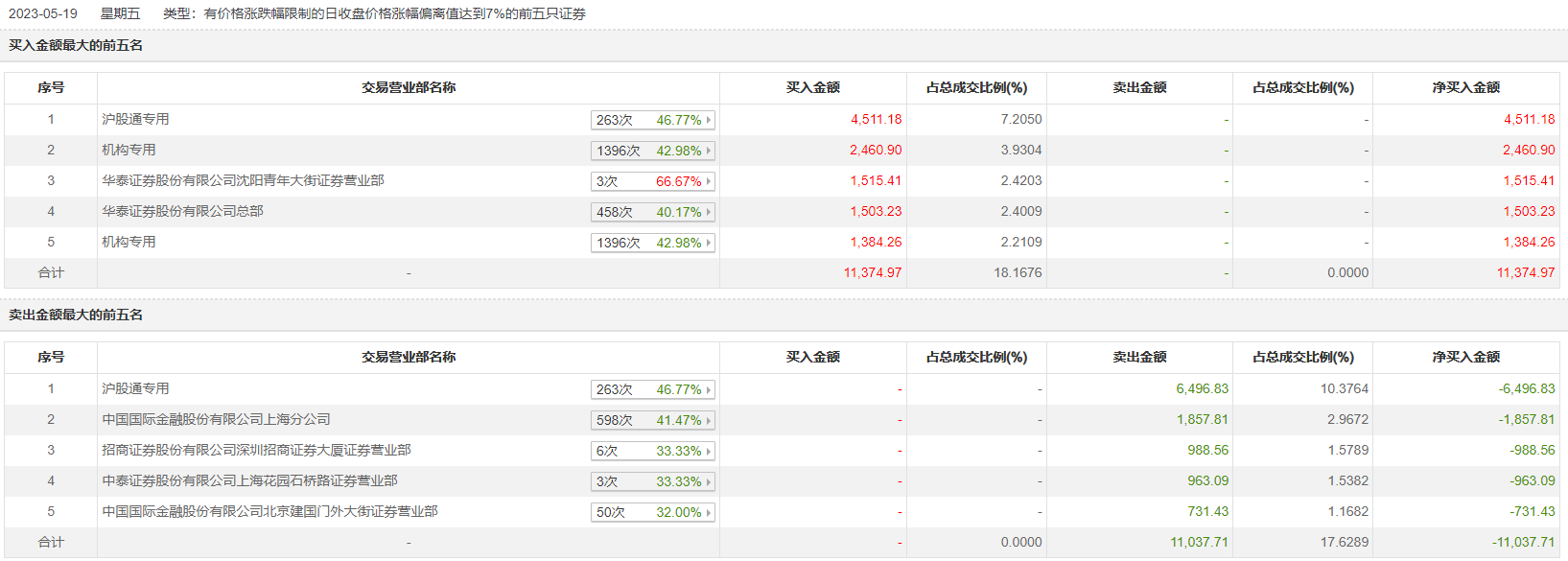 具体来看,机构合计净买入3845.16万元。此外,沪股通专用、华泰证券沈阳青年大街证券营业部分别买入4511.18万元、1515.41万元;沪股通专用、中国国际金融上海分公司分别卖出6496.83万元、1857.81万元。