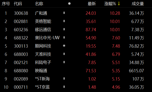 边缘计算板块异动拉升 美格智能、移远通信涨停