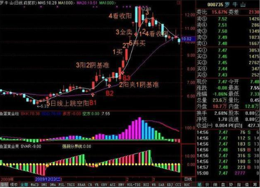 第 一天逢低买入,称为一买,第二天T 0,第三天全出,第四天判断,如果收中阳,第五天可买入,如果收阴线可先放弃等待5日线回调20日均线不破又上翘时的基准买点,收十字星的话可以再看一 天,如果后一天出现跳空阳最好,基准当天也可以买,如果买不到很低的价格就第二天逢低买,口诀熟时如出现新基准则按新基准算。