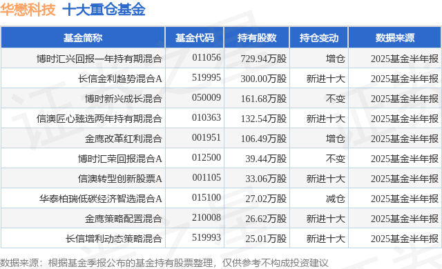 重仓华懋科技的前十大公募基金请见下表: