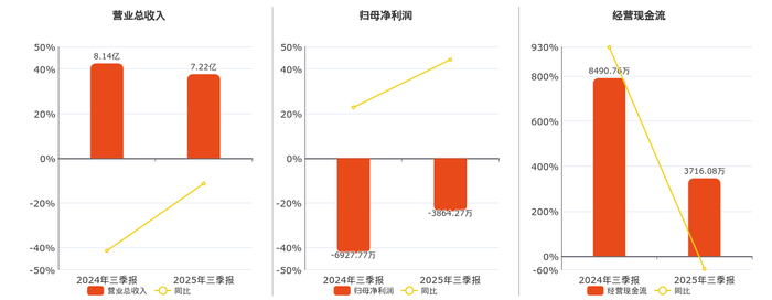 公司营业总收入为7.22亿元,较去年同报告期营业总收入减少9232.07万元,同比较去年同期下降11.34%。归母净利润为-3864.27万元。经营活动现金净流入为3716.08万元,较去年同报告期经营活动现金净流入减少4774.68万元,同比较去年同期下降56.23%。
