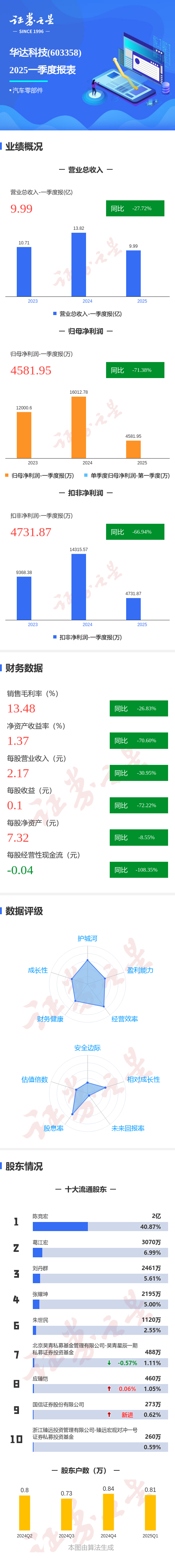 图解华达科技一季报:第一季度单季净利润同比减71.39%