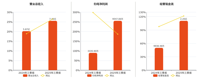 公司营业总收入为7.42亿元。归母净利润为9547.06万元。经营活动现金净流入为2.20亿元。