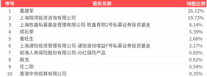 公司股东户数为1.72万户,前十大股东持股数量为2.01亿股,占总股本比例为66.58%,前十大股东持股情况如下:
