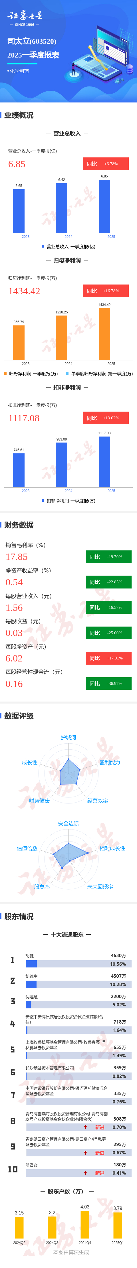 图解司太立一季报:第一季度单季净利润同比增16.79%