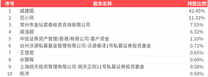 公司股东户数为6750户,前十大股东持股数量为7633.59万股,占总股本比例为72.01%,前十大股东持股情况如下: