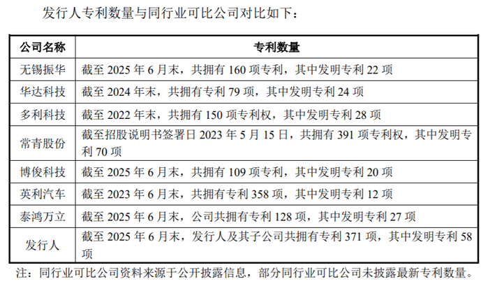 如上表所示,截至2025年6月末,至信股份及其子公司共拥有专利371项,其中发明专利58项,至信股份专利总数量及发明专利数量在同行业可比公司内排名第2,仅次于常青股份,专利数量及核心技术具备竞争优势。