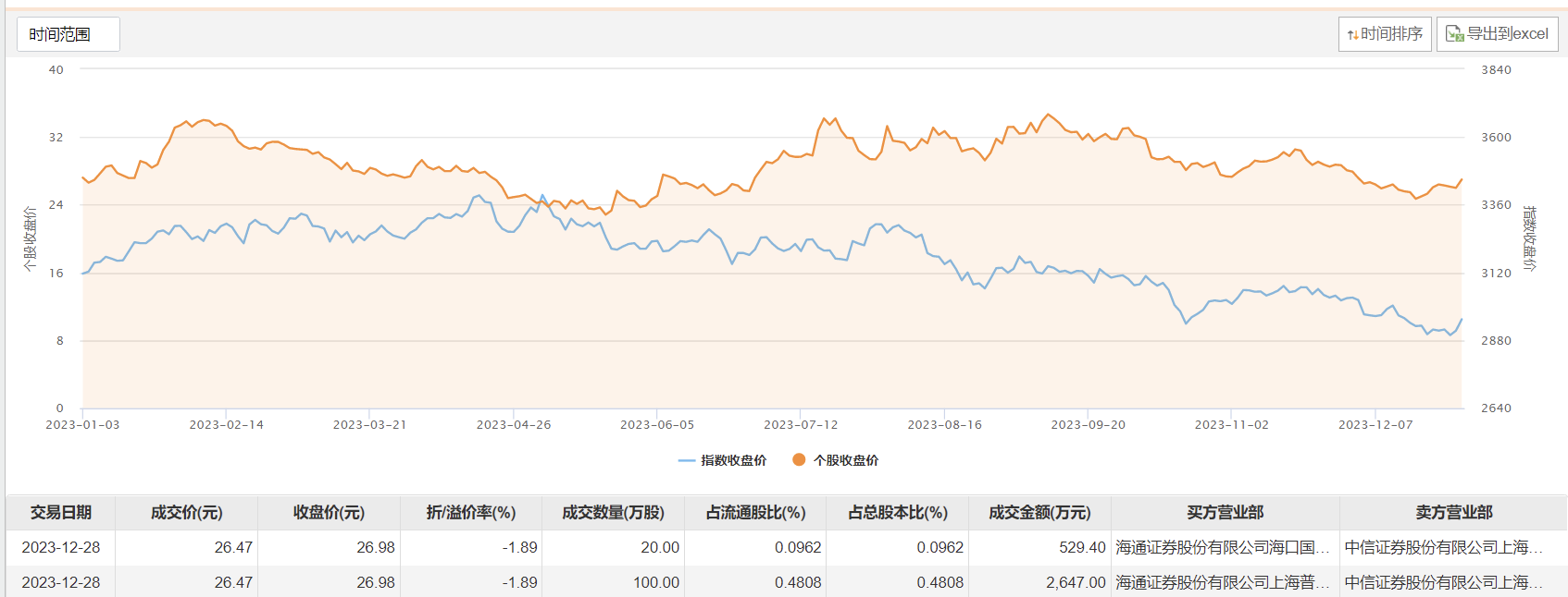 今日大宗交易成交120万股,成交额3176.4万元,占当日总成交额的42.6%,成交价26.47元,较市场收盘价折价1.89%。