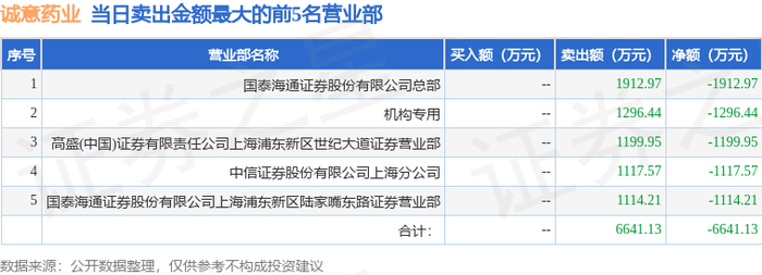 10月28日诚意药业(603811)龙虎榜数据:机构净卖出1296.44万元